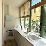 Contemporary Oasis In The Heart Of Lisbon Appartement van 90 m^2 heeft een centrale ligging en biedt gemakkelijke toegang tot Nationaal Pantheon op loopafstand van 25 minuten hiervandaan. Dit appartement heeft een privézwembad en een terras, dat op de tuin uitkijkt.